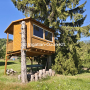 A helyszínrajzon két épület is be van rajzolva. (18 nm és 22 nm) Jelenleg van egy régebbi "cseh típusú" faház, ami pihenő házként is használható és egy jól megépített kis lombház is.